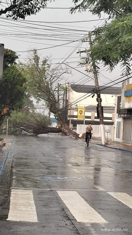 Árvore e poste caíram na rua Armando Salles de Oliveira